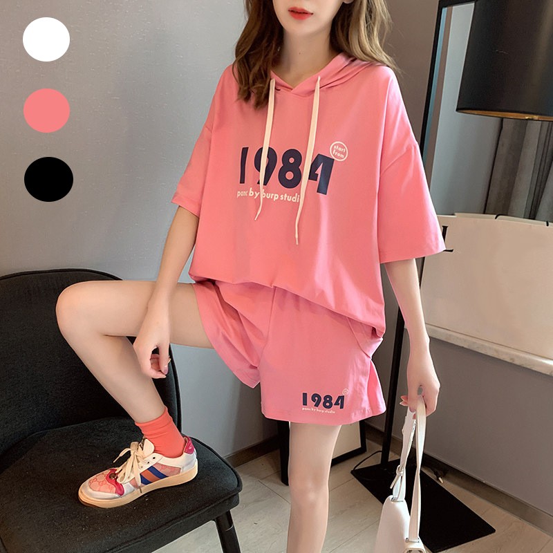 部屋着 ルームウェア セットアップ レディース 半袖 パジャマ 上下セット スウェット パーカー ショートパンツ 短パン ウエストゴム リラックス 韓国風 着痩せ プルオーバー 大人可愛い 体型カバー