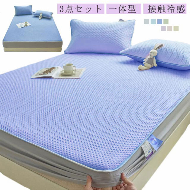 ボックスシーツ 冷感 ボックスシーツ 枕カバー 一体型 パット一体型 敷きパット 3点セット 防水 マットレスカバー
