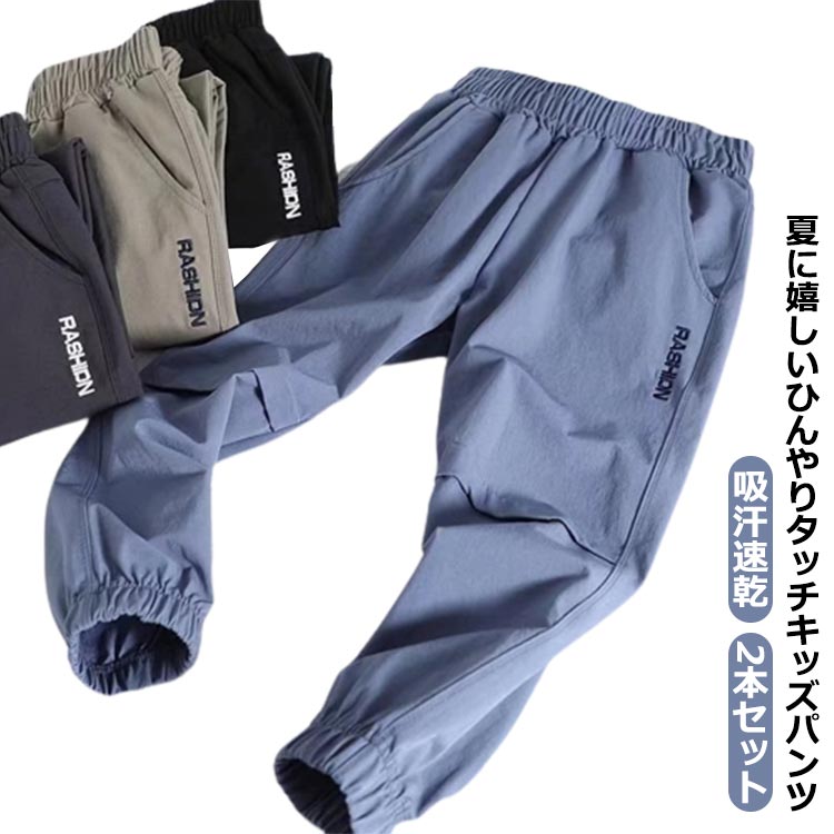 2本セット キッズ 薄手 ロングパンツ 長ズボン イージーパンツ カジュアルパンツ 夏 男の子 子ども服 接触冷感 吸汗速乾 涼しい 春 子供服 小学生 ゆったり 虫除け ジュニア