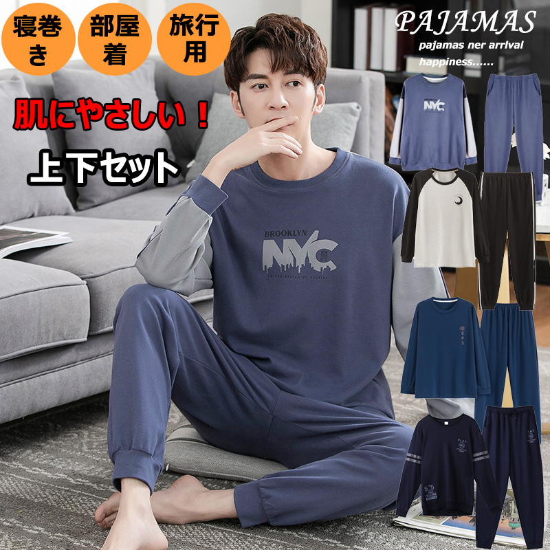 40-90対応 どんな年代にも似合う 大学生高校生高齢者 クルーネック セットアップ パジャマメンズ ルームウェアメンズ 寝巻きメンズ 部屋着メンズ パジャマメンズ長袖綿 ナイトウェア