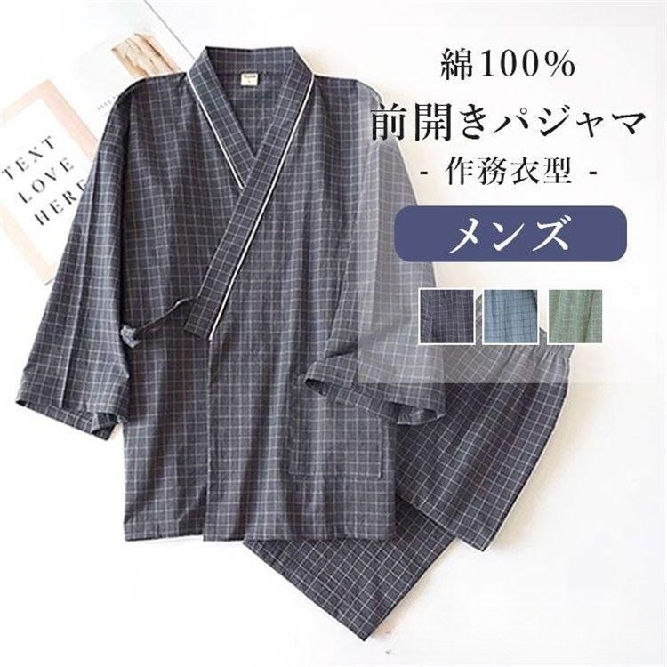 おしゃれ 実用的 メンズ パジャマ 入院パジャマ 綿100% 前開きパジャマ 作務衣型 3カラー 入院 男性 紳士 介護 部屋着 前開き 甚平 じんべい贈り物 寝間着 検査着 プレゼ 患者衣