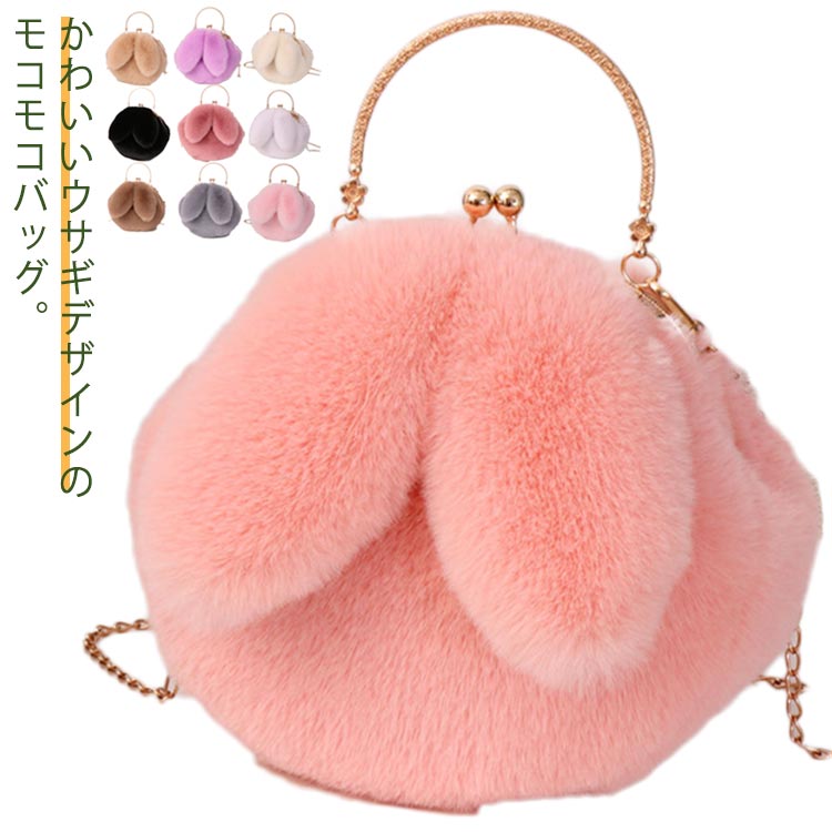 ショルダーバッグ ハンドバッグ ウサギ耳 2 レディース 斜めがけ 手提げ フェイクファー 春 秋冬 2 がま口