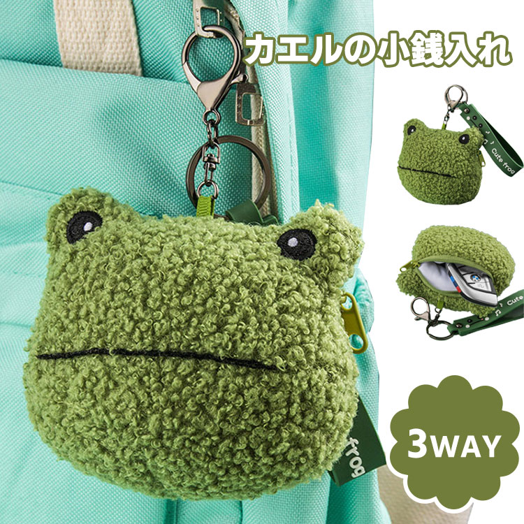 カエル 小銭入れ かわいい バッグチャーム キーホルダー 鍵 収納バッグ キーリング ぬいぐるみ ポーチ コインケース おもちゃ イヤホン用 イヤホン収納 キーチャーム リップスティック スト ケース