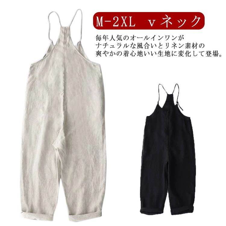 サロペット リネンサロペット レディース 通気性 リネンパンツ ゆるい オールインワン 涼しい 夏 ワイドパンツ きれいめ