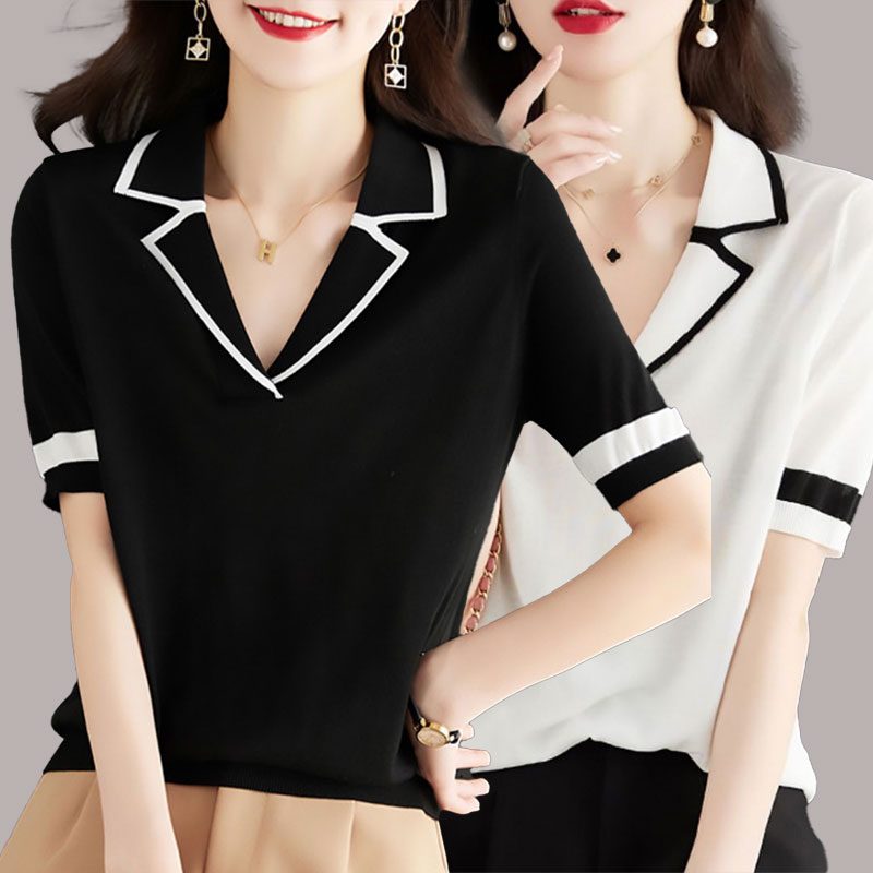 vネック トップス レディース サマーニット 半袖 カーディガン カジュアル きれいめ オフィス オフィスカジュアル 春夏 秋 カットソー ニットソー ゆったり tシャツ 通勤 上品 襟付き 3 大人