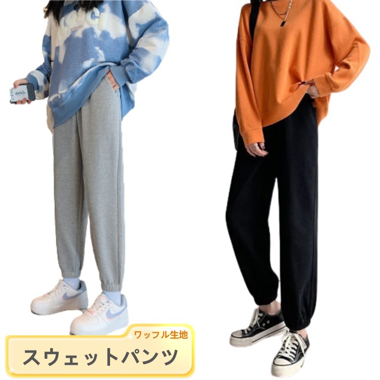 レディース 春秋 スウェットパンツ ジョガーパンツ ワッフル ハイウエスト ロングパンツ イージーパンツ 薄手 軽量 ストレートパンツ ニットパンツ 柔らかい スポーツウェア 細見え 無地 体型カバー