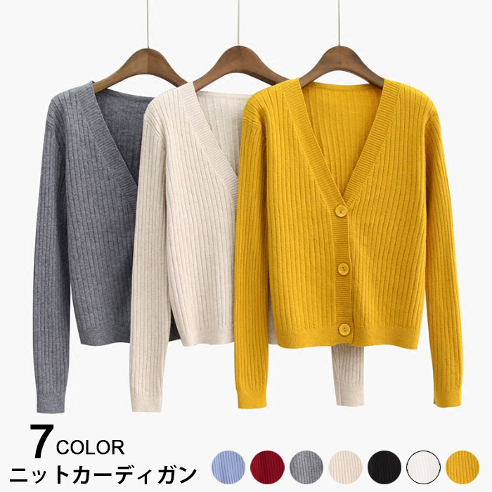 カーディガン レディース ニットカーディガン リブニット 無地ニット 長袖 Vネック ショート丈 ショートカーディガン ボタン付き 羽織 お洒落 リラックス 秋物 秋新作 カジュアル