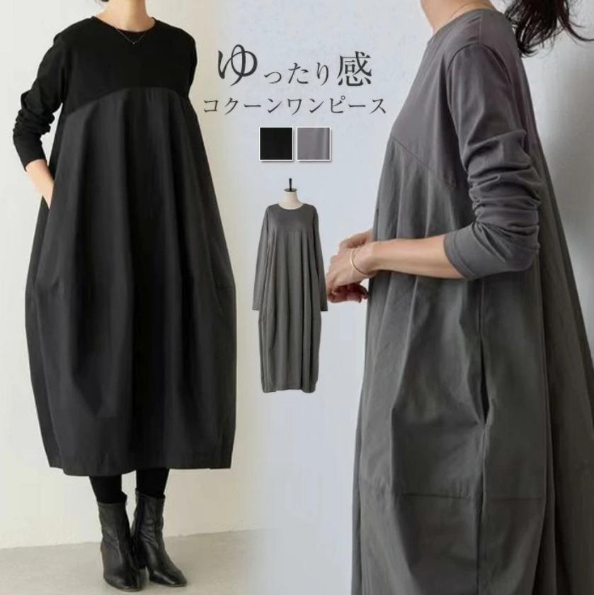 ニットロングワンピース ラウンドネック 長袖 シンプル 通勤 春 秋 冬 レディース フォーマル カジュアル お出かけ 七五三 ママ 30代 40代 50代 ゆったり 体型カバー トレンド お 着痩せ