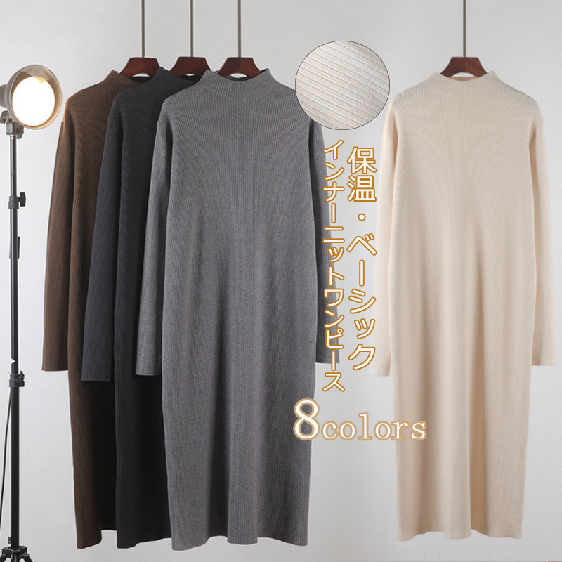 ハイネック ワンピース ロングニット ワンピース ニットワンピース レディース ニット ロングワンピース 無地 防寒 柔らかい ハイネック 送料無料