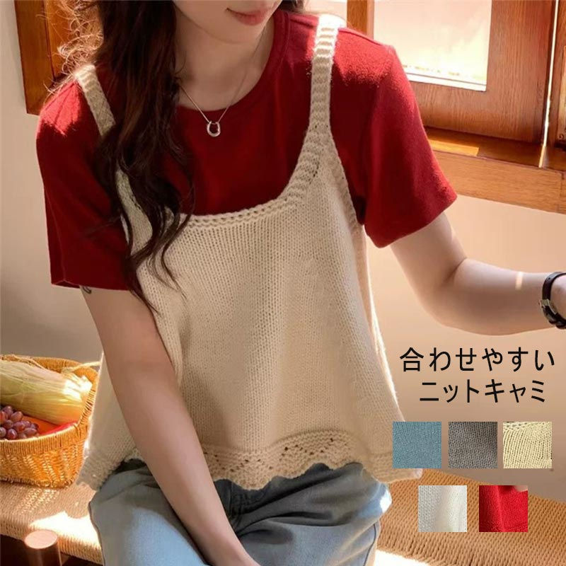ニットキャミ キャミソール ベスト レディース ネック ニット ビスチェ キャミ ニットベスト フレア 大きいサイズ クロシェ ベスト ペプラム トップス ノースリーブ