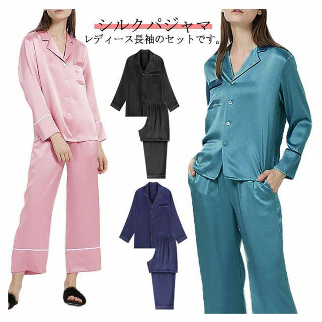 パジャマ シルク レディース 長袖 上 インナー 下着 ナイトウエア 続々登場 グレーブルー レッド ブラック ワインレッド ダークベージュ ピンク ライトブルー シルバー ネイビー ホワイト ダークグリーン S M L XL 2XL