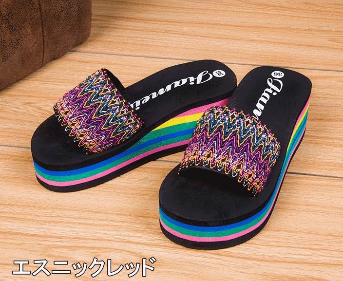 サンダル レディース シューズ 厚底 靴 新作 エスニックブルー エスニックレッド ブラック レッド グリーン 22.0 22.5 23.0 23.5 24.0 24.5 25.0