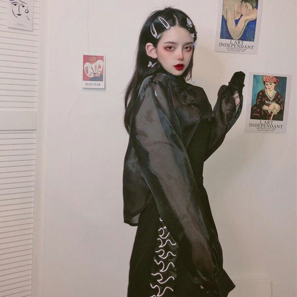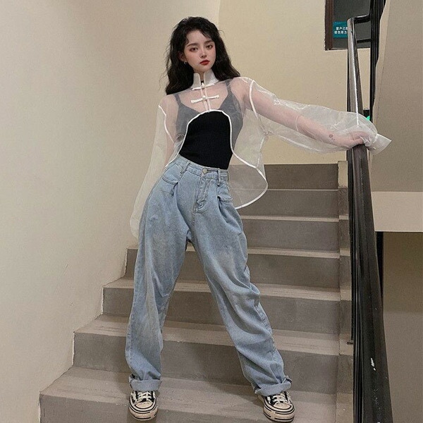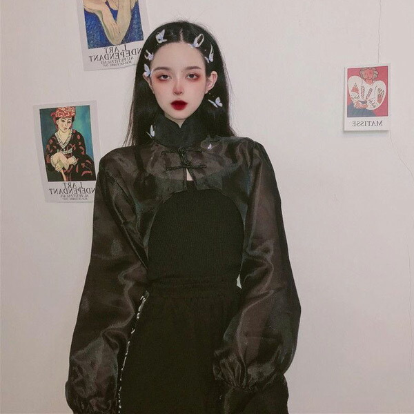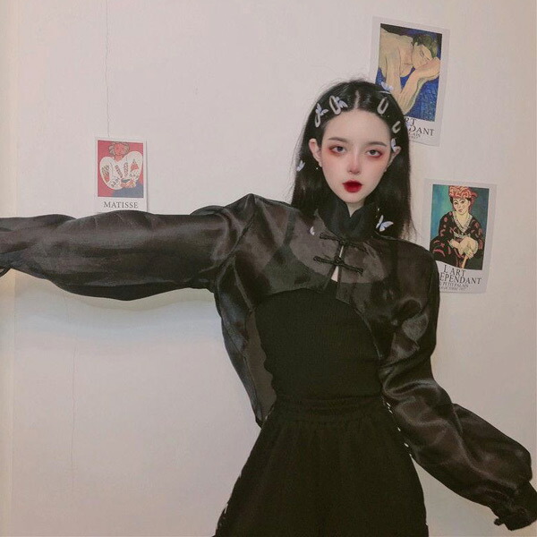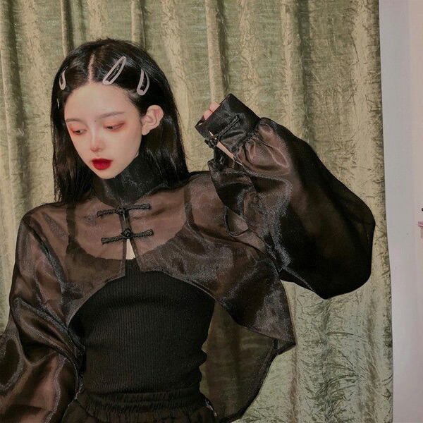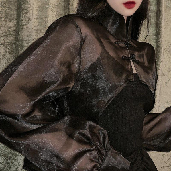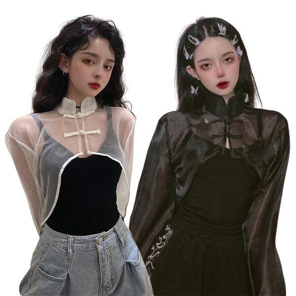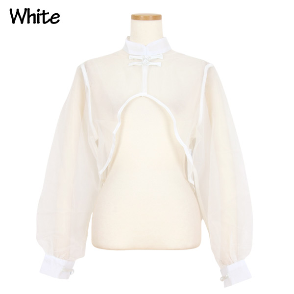 シアー チャイナシャツ ショート丈 カ レディースファッション 続々登場 ホワイト ブラック ワンサイズ