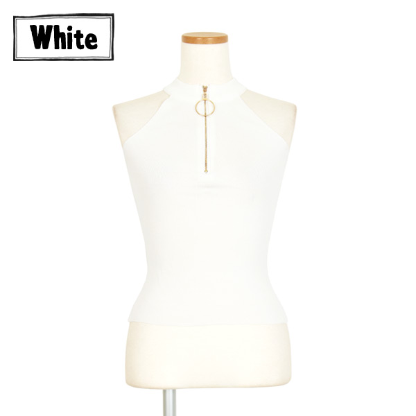 ニットソー ノースリーブ クロップド丈 レディースファッション 通販 ホワイト ブラック Sサイズ Mサイズ