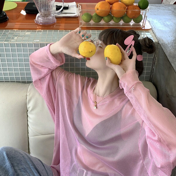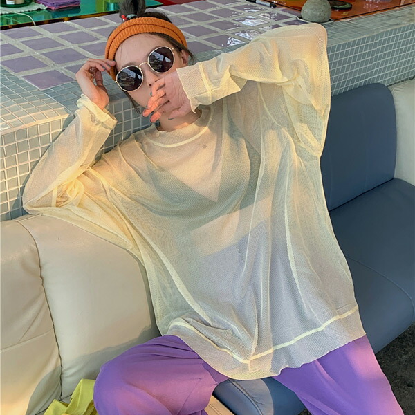 シアートップス 透けトップス 透けTシ レディースファッション 特集 ホワイト ピンク イエロー グリーン ライトブルー ブルー オレンジ ワンサイズ