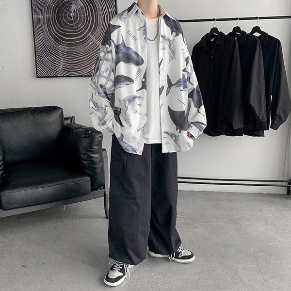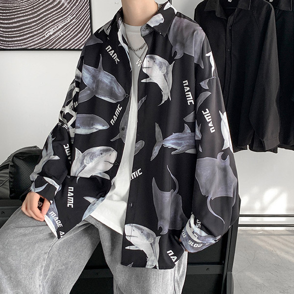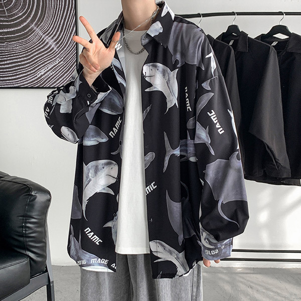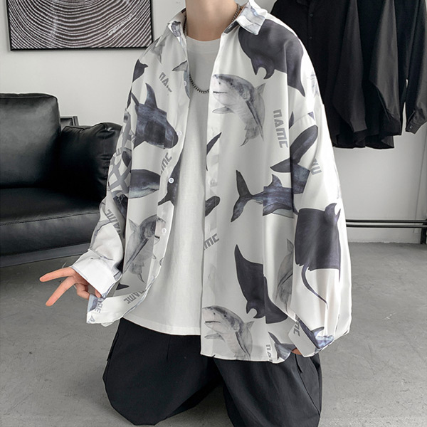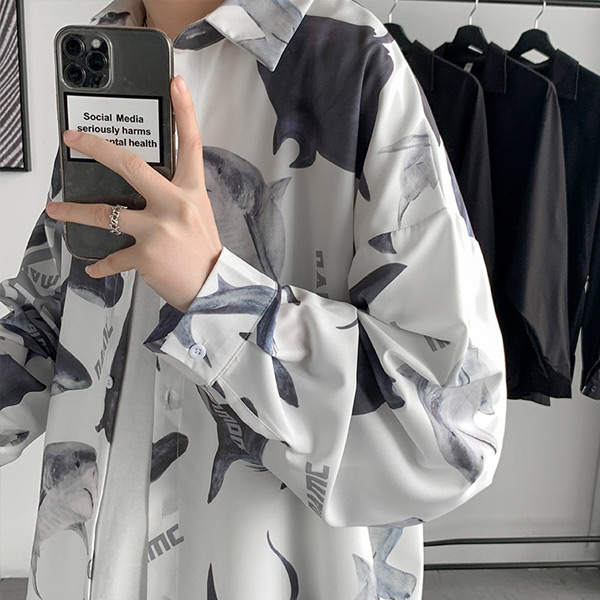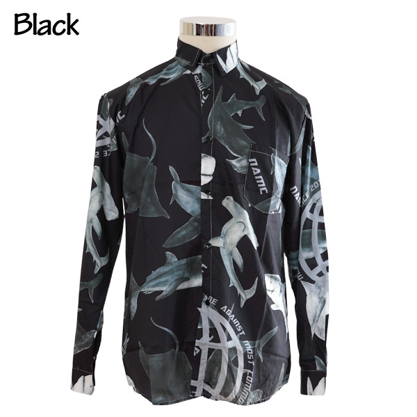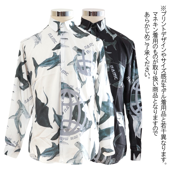柄シャツ シャーク柄 サメ柄 鮫柄 プ メンズファッション 続々入荷中 ホワイト ブラック ワンサイズ