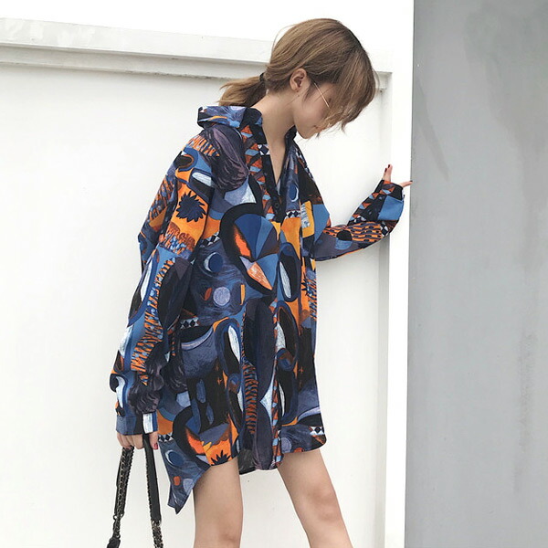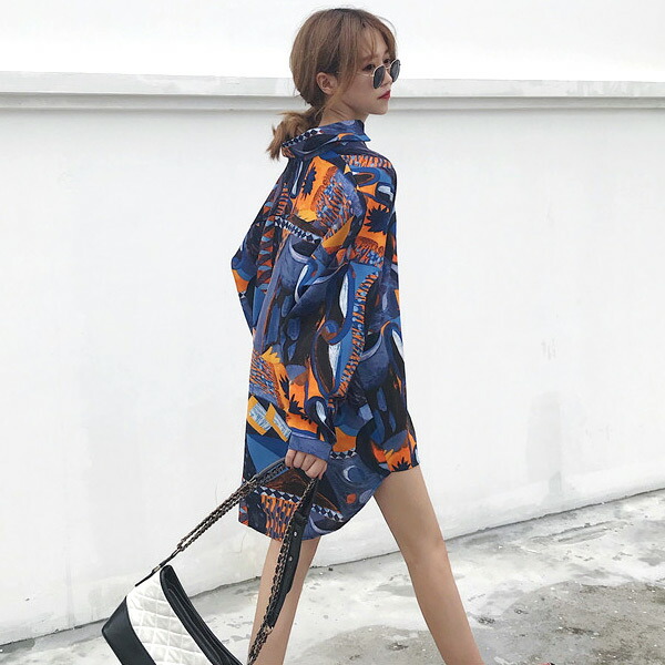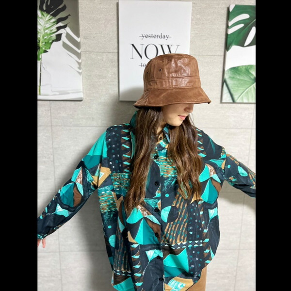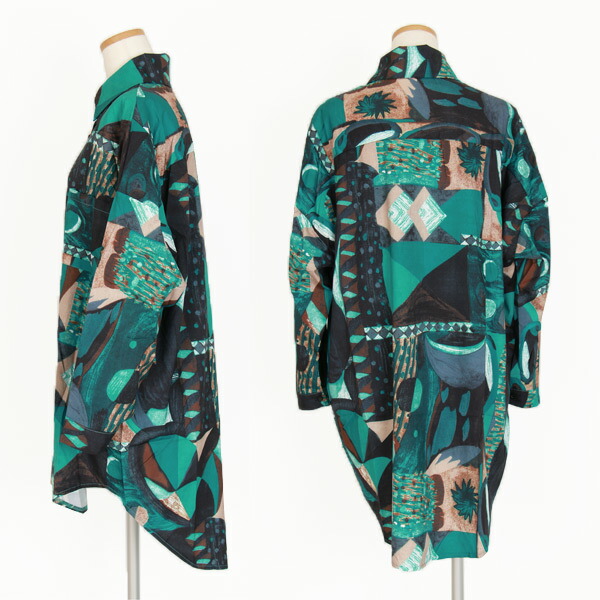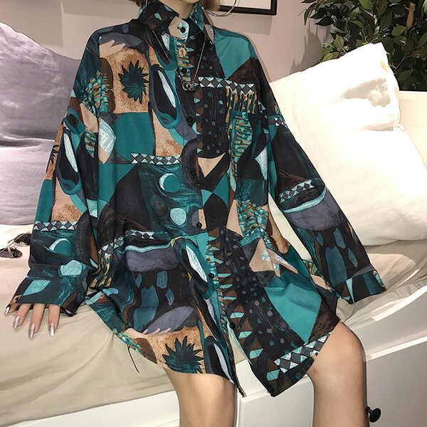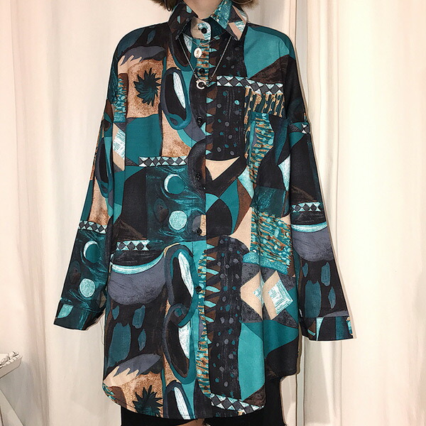 柄シャツ シャツ レディース 長袖 ド レディースファッション 超目玉商品 グリーン ネイビー ワンサイズ(すぐ発送)