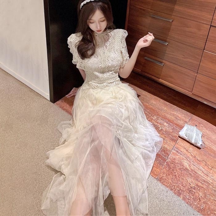 パーティードレス 結婚式 二次会 ロン ドレス 超目玉商品 grey-blue beige S M