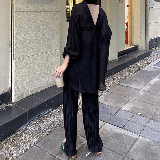 シフォンブラウス シアーブラウス ボリューム袖