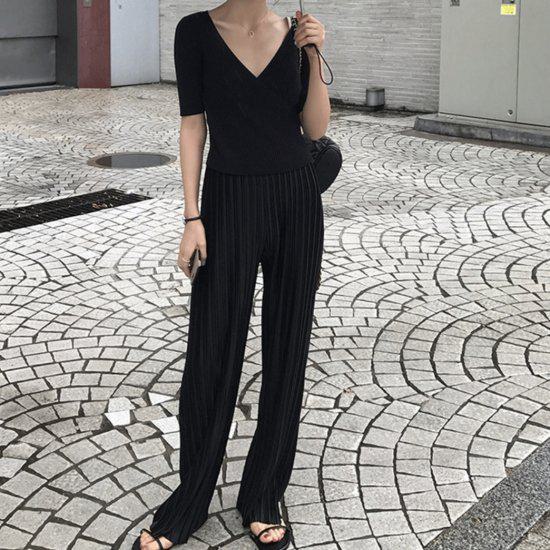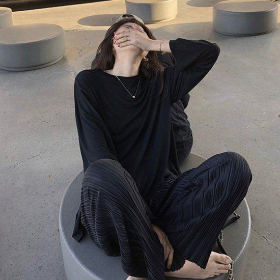 パンツ プリーツ ロング レディース レディースファッション 続々登場 ブラック グレー S M L XL 2XL 3XL 4XL