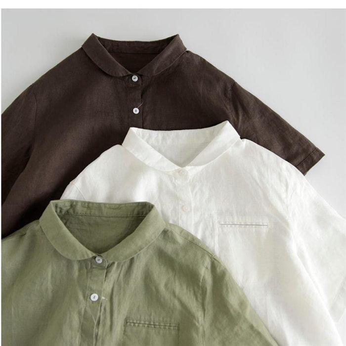 リネンシャツ 半袖 レディース 麻10 トップス パーカー 早い者勝ち ホワイト グリーン コーヒー M L XL 2XL
