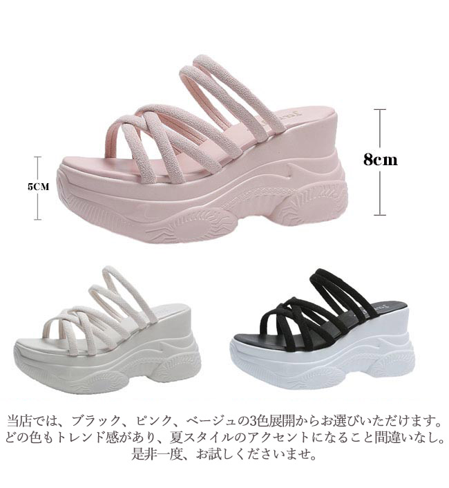 厚底サンダル 美脚 サンダル 厚底 サンダルシューズ レディース 2way さんだる 靴 女性 大人 ヒール8cm シューズ シンプル ピンク ベージュ di ブラック