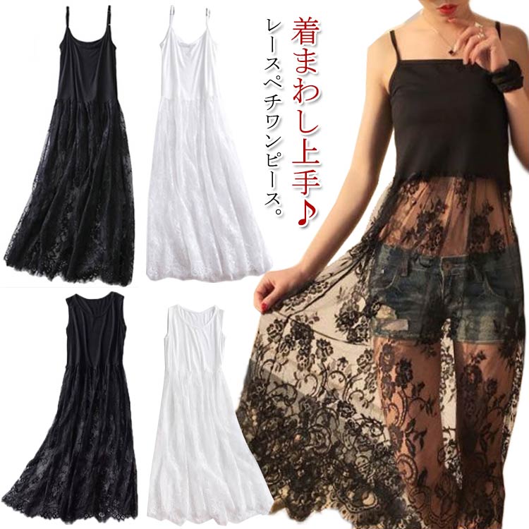 ペチコート インナーワンピース レース レディース インナー 下着 ペチコート 通販 白キャミ(裏地付) 黒キャミ(裏地付) 白タンク(裏地付) 黒タンク(裏地付) 黒キャミ(裏地なし) 白キャミ(裏地なし) S M L XL 2XL