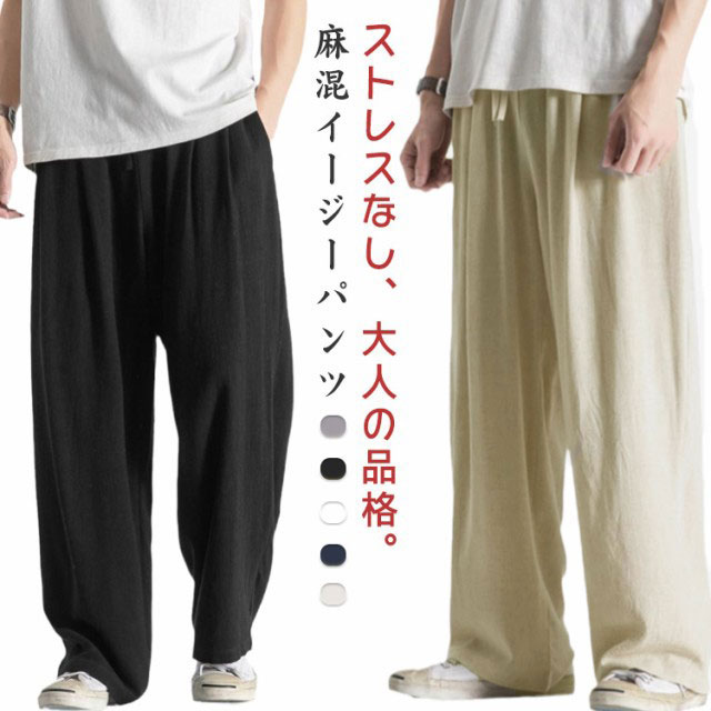 パンツ 麻 メンズ イージーパンツ リ メンズファッション 新登場! ダークグレー ブラック ネイビー ホワイト ベージュ M L XL 2XL 3XL 4XL 5XL