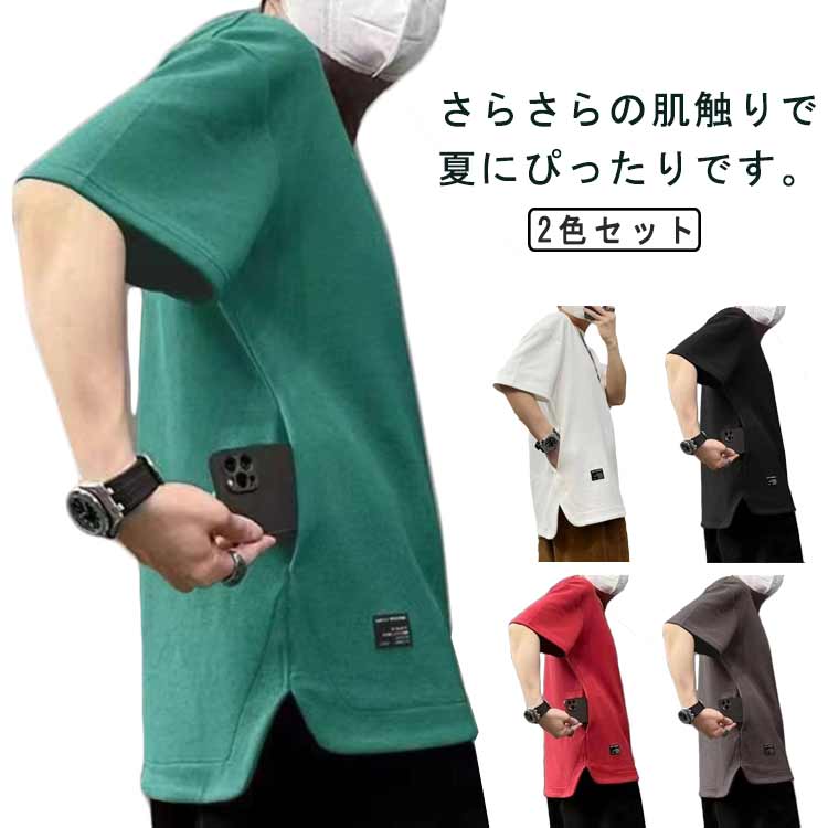 メンズ Tシャツ ポケットあり サイド メンズファッション 人気 黒+白 レッド+グレー 白+グリーン M L XL 2XL 3XL 4XL 5XL