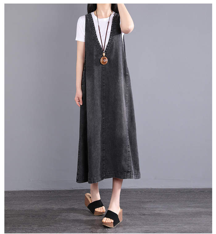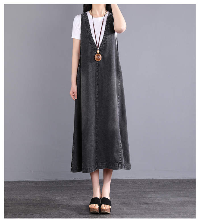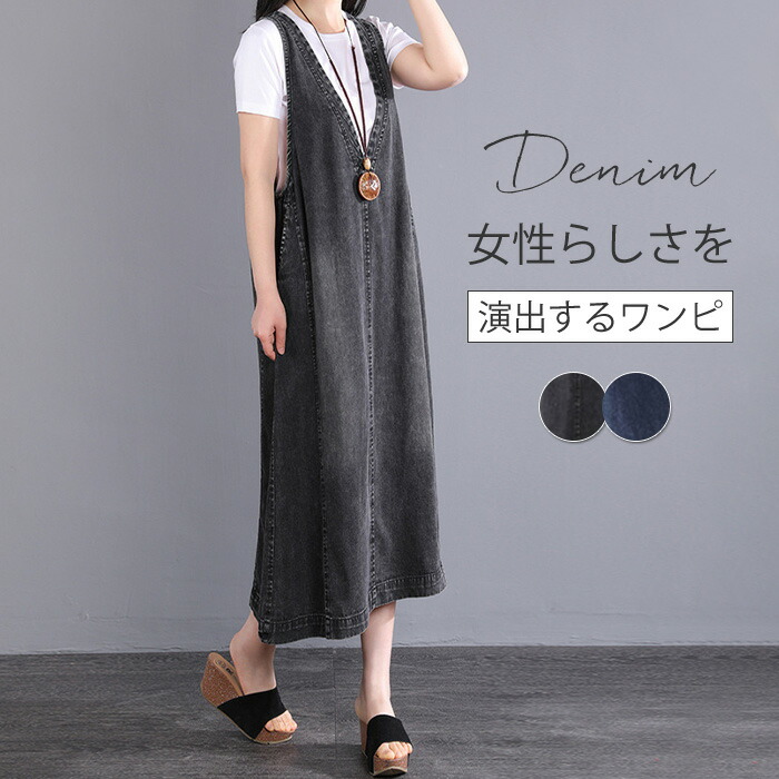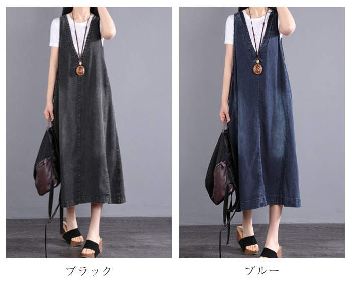 デニム ジャンパースカート ワンピース ブラック ブルー L XL 2XL