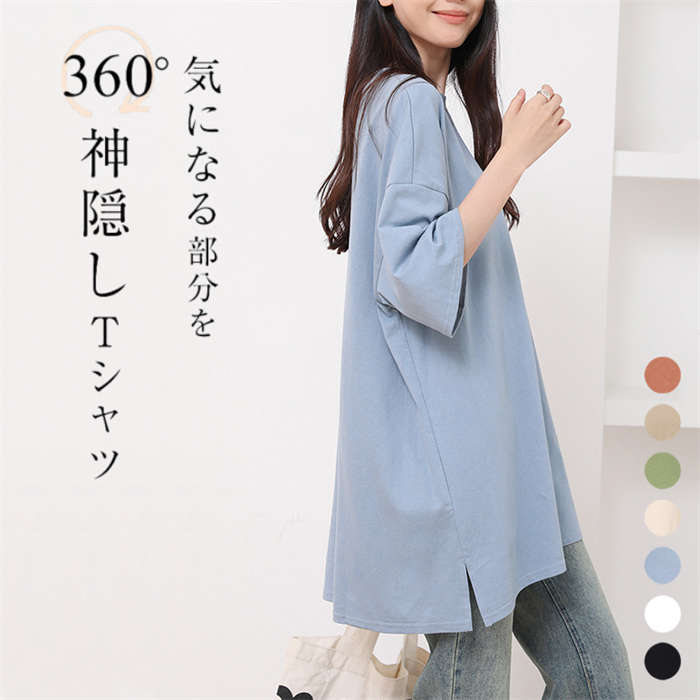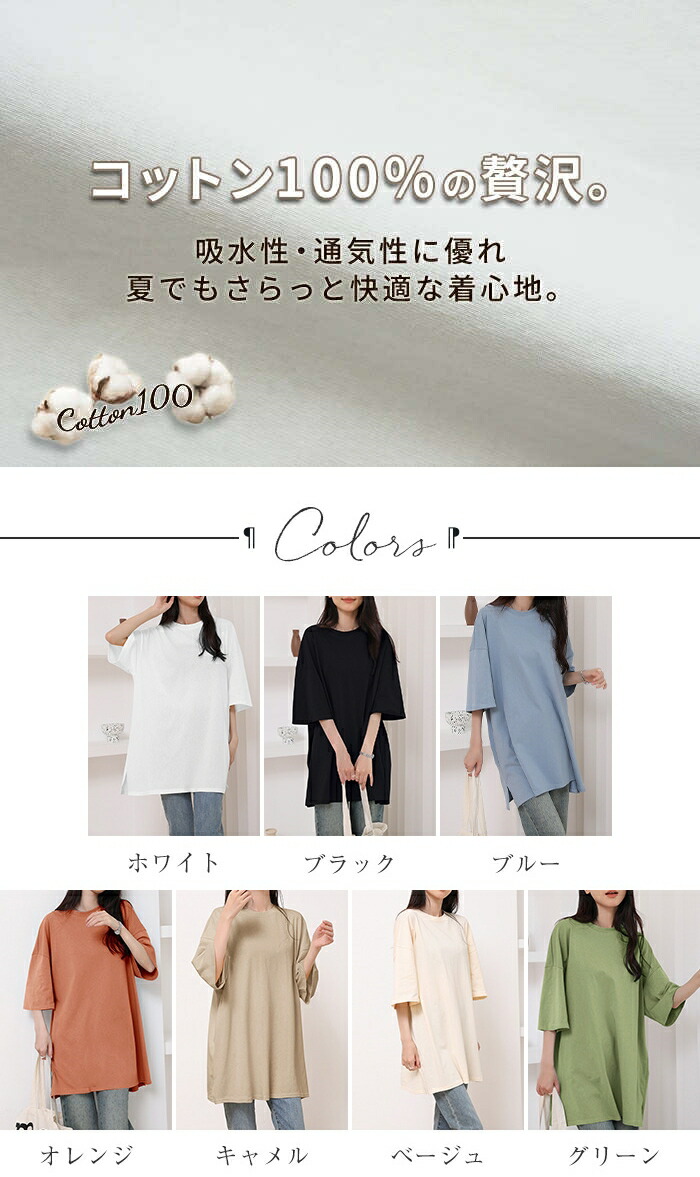 tシャツ レディース トップス カット チュニック 早い者勝ち ホワイト ブラック ブルー オレンジ キャメル ベージュ グリーン M L XL