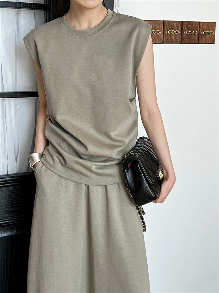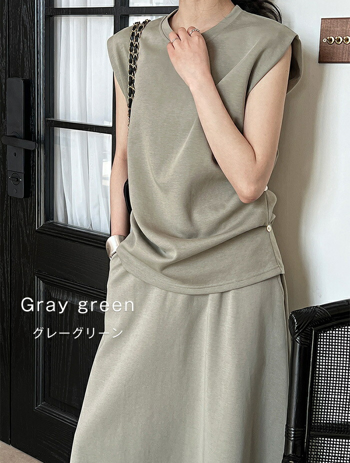 セットアップ カットソー Tシャツ レ スーツ セットアップ スカートスーツ 早い者勝ち グレーグリーン ベージュ M L