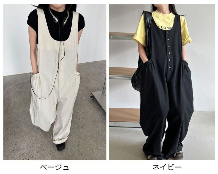 オールインワン レディース サロペット レディースファッション 新作 ベージュ ネイビー M L