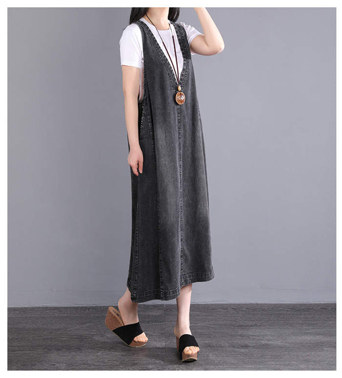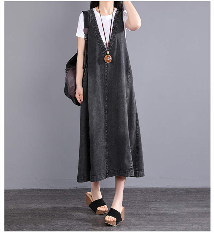 デニム ジャンパースカート ワンピース ブラック ブルー L XL 2XL