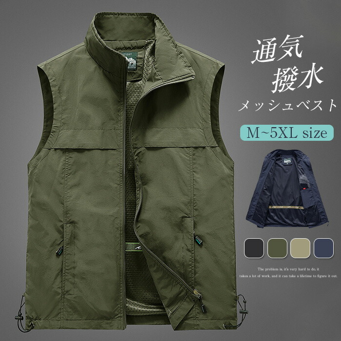 ベスト メンズ 春夏 メッシュ 薄手 トップス ベスト ジレ 早い者勝ち ブラック カーキ ベージュ ネイビー M L XL 2XL 3XL 4XL 5XL