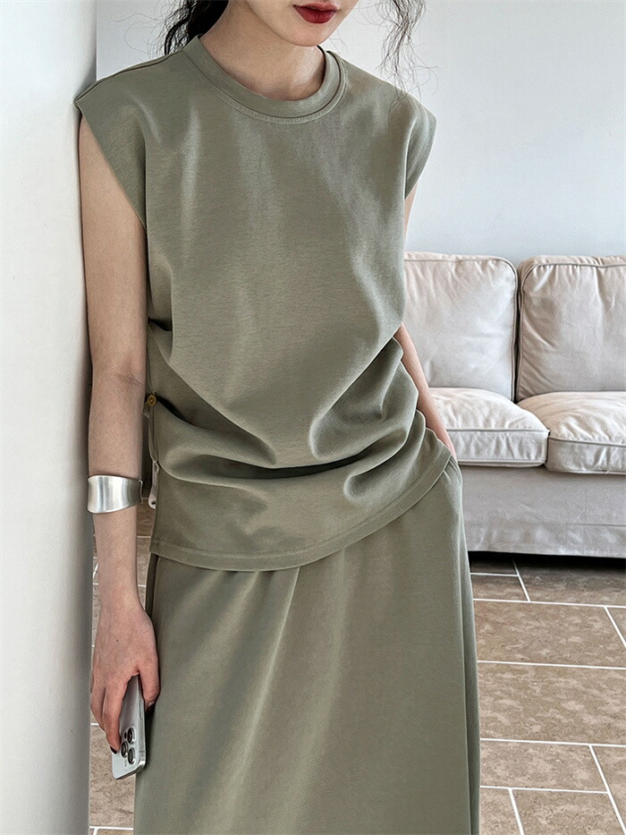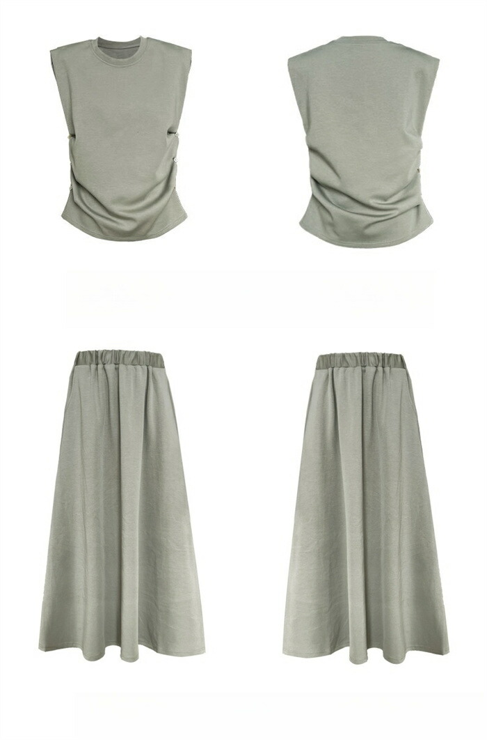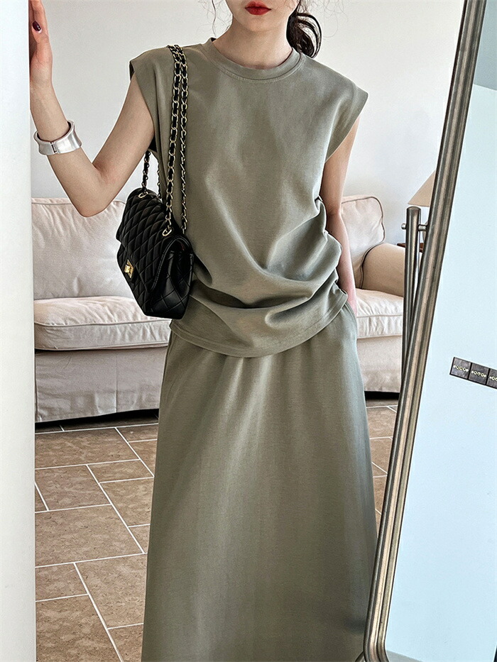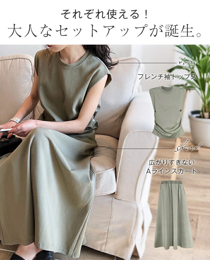 セットアップ カットソー Tシャツ レ スーツ セットアップ スカートスーツ 豊富 グレーグリーン ベージュ M L
