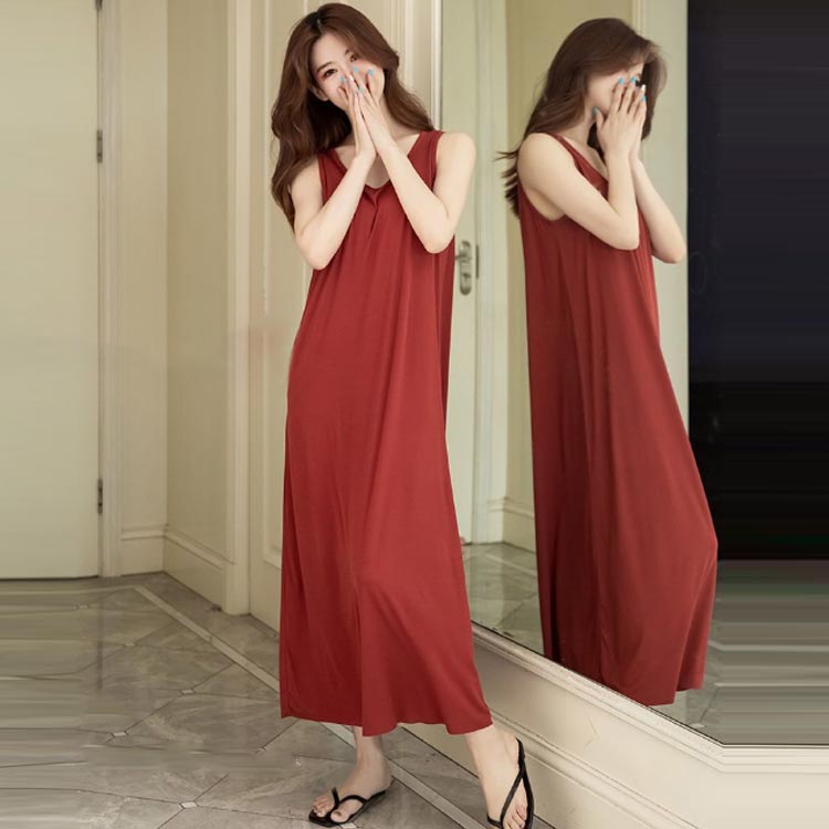 ルームウェア ワンピース ノースリーブ レッド ブラック ブルー M L XL 2XL