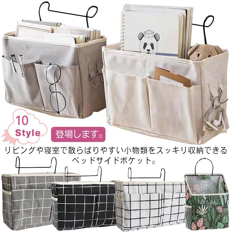 収納ラック ベッドサイド 吊り下げ 多 A-グレー A-アイボリー A-ホワイトチェック A-グレーチェック A-ブラックチェック B-グレー B-ホワイト B-植物 B-ホワイトチェック B-グレーチェック