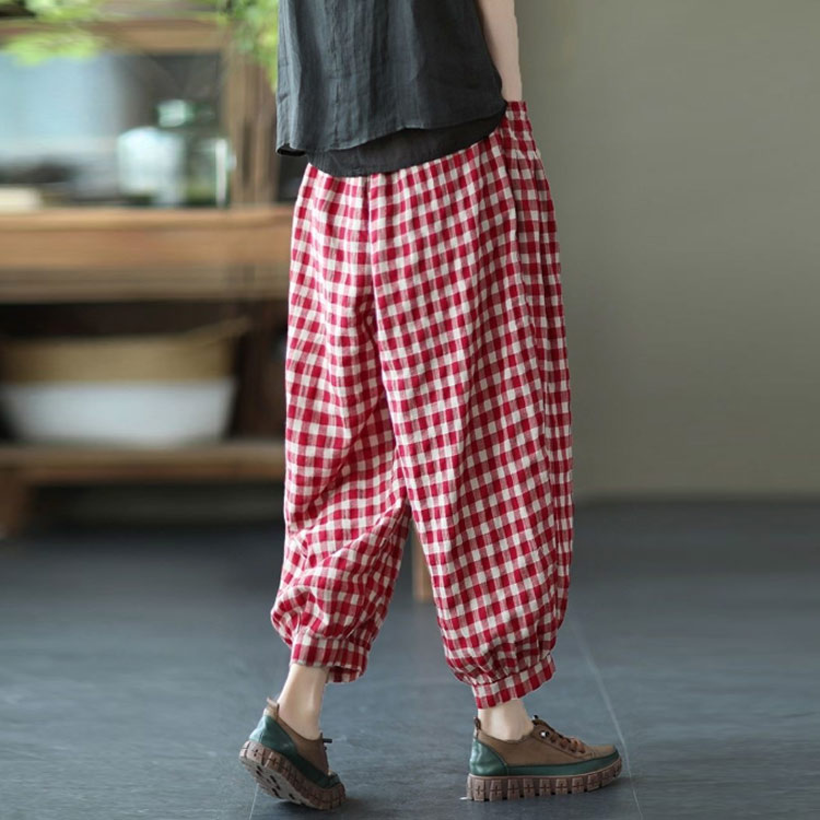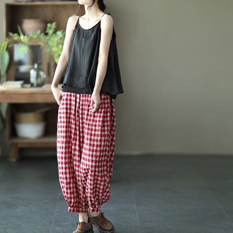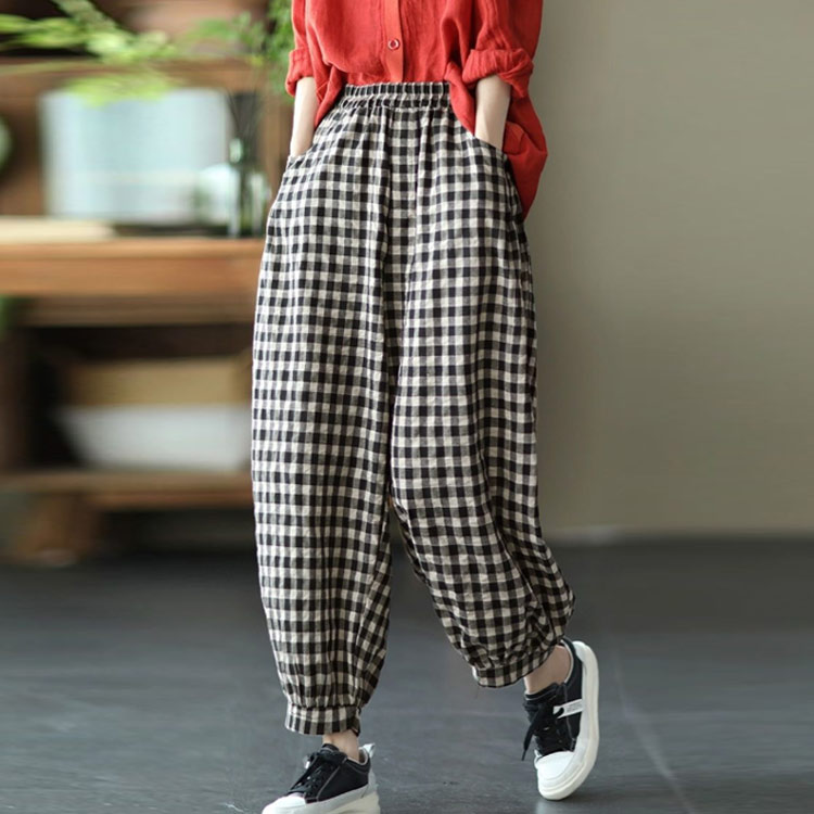 M-4XLサイズ チェック柄パンツ レ レディースファッション 続々登場 ブラック レッド M L XL 2XL 3XL 4XL