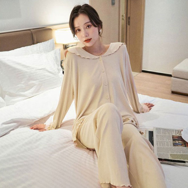 マタニティ 授乳 パジャマ 長袖 上下 マタニティ ママ 下着 パジャマ パジャマ ネグリジェ 特集 ベージュ コーヒー M L XL 2XL 3XL 4XL