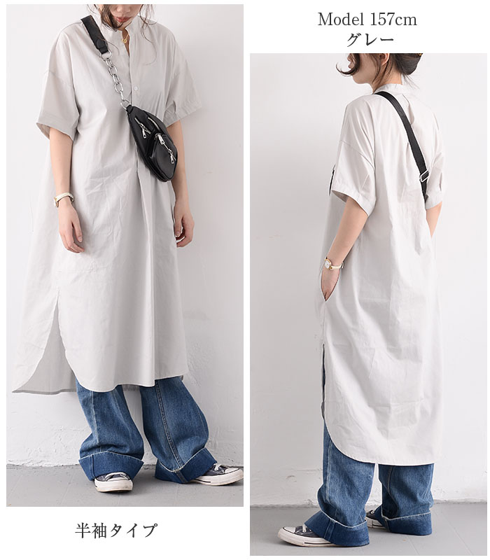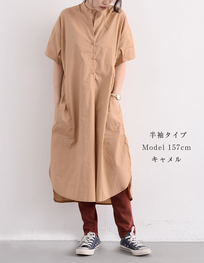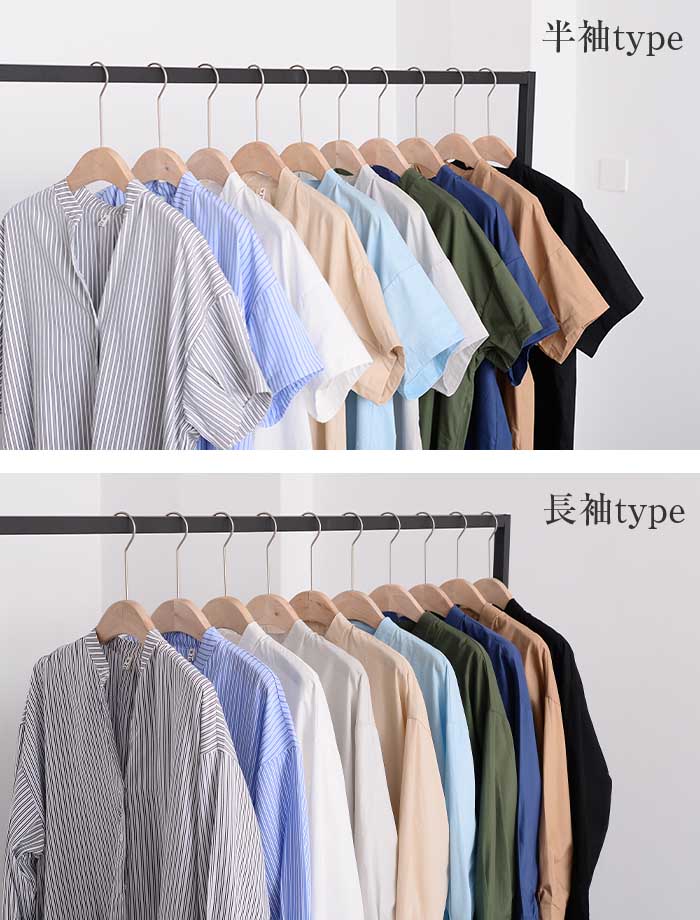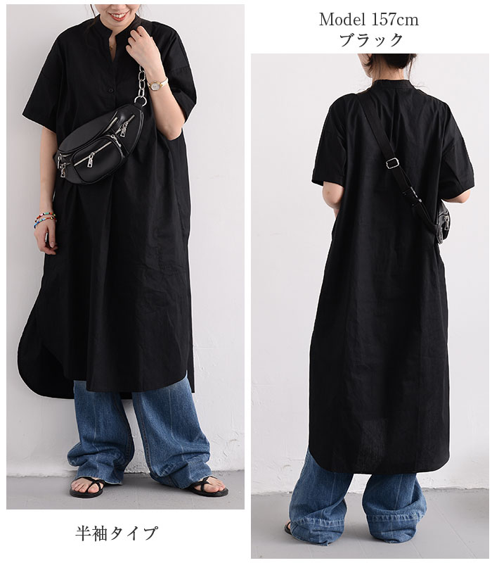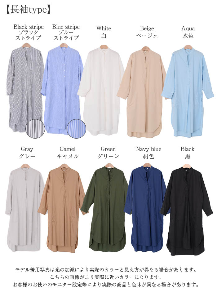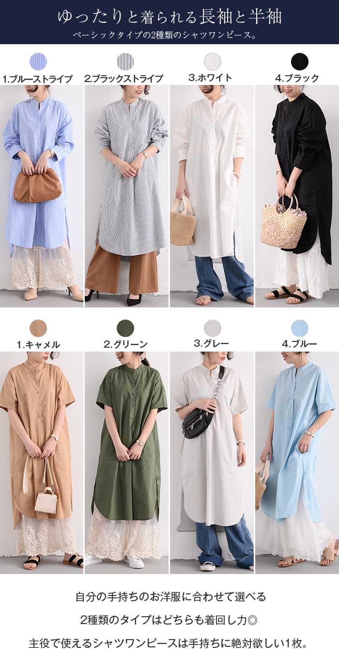 シャツワンピース ロングシャツワンピー 長袖 【半袖追加】 黒 白 グレー ベージュ キャメル 水色 グリーン 紺色 (New)ブラック ストライプ (New)ブルー ストライプ