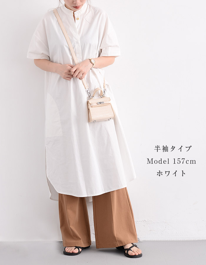 シャツワンピース ロングシャツワンピース 白 大きいサイズ 春 秋 ワンピース チュニック ロング 長袖 白シャツ 紫外線対策 UVカット 綿 コットン 体型カバー レディース