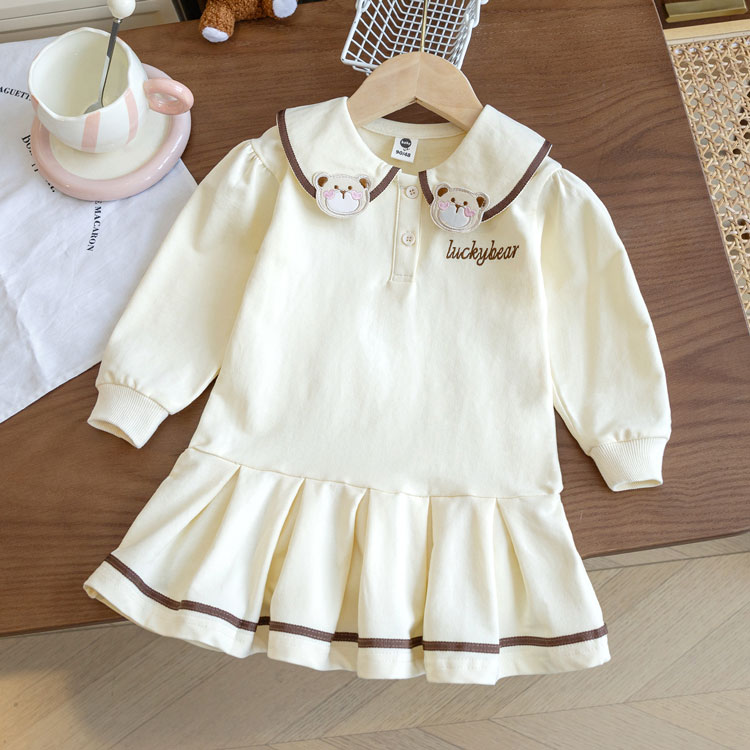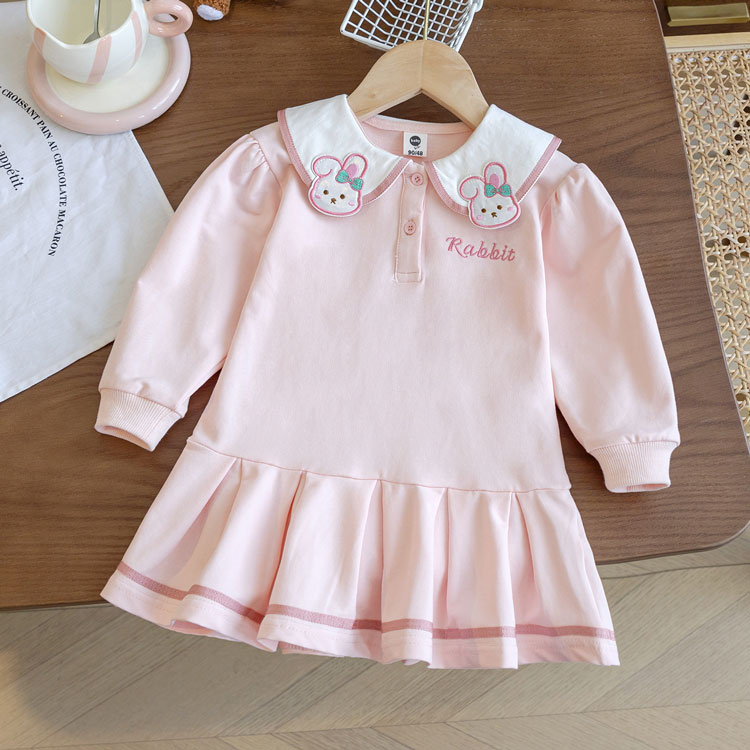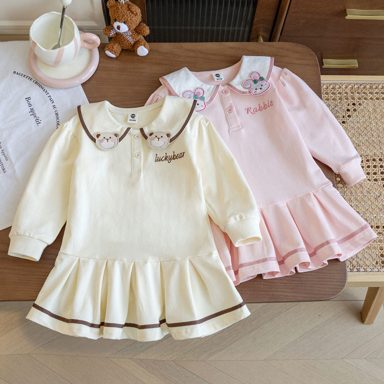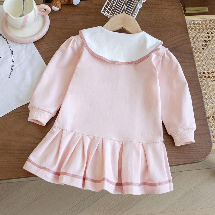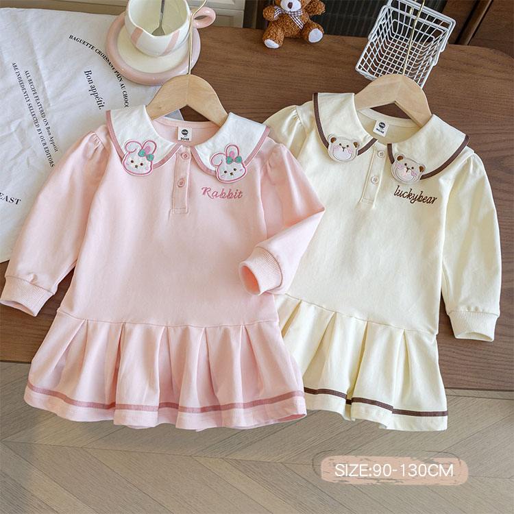 子供服 女の子 長袖 ポロワンピース キッズ ワンピース 豊富 ピンク ベージュ 90cm 100cm 110cm 120cm 130cm
