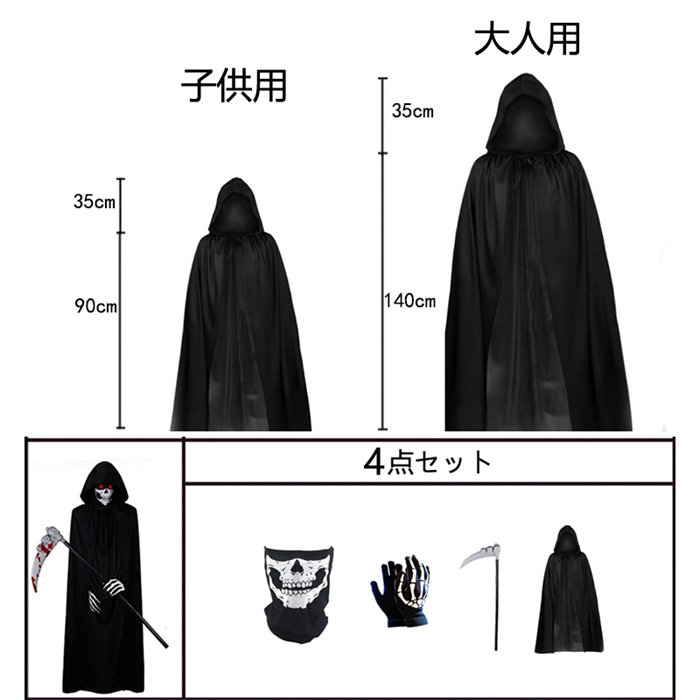 死神 4点セット コスプレ マント コ ホビー 豊富な品揃え 子供用 大人用