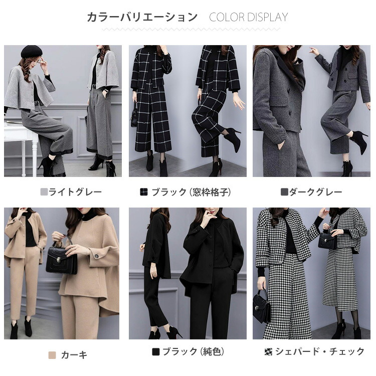 セットアップ 卒業式 スーツ 入学式 レディースファッション 通販 ライトグレー ブラック(窓枠格子) ダークグレー カーキ ブラック(純色) シェパード・チェック S M L XL 2XL 3XL