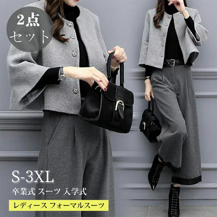 セットアップ 卒業式 スーツ 入学式 レディース フォーマルスーツ 母 卒園式 セレモニースーツ パンツスーツ ママ 上下セット 大きいサイズ ワイドパンツ 結婚式 写真撮影 入園式 九分丈
