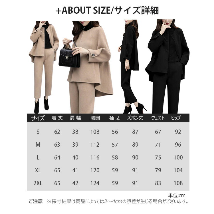 【S】 バスト/98 着丈/50 肩幅/38 袖丈/45(cm)【S】 ヒップ/92 ズボン丈/85(cm)