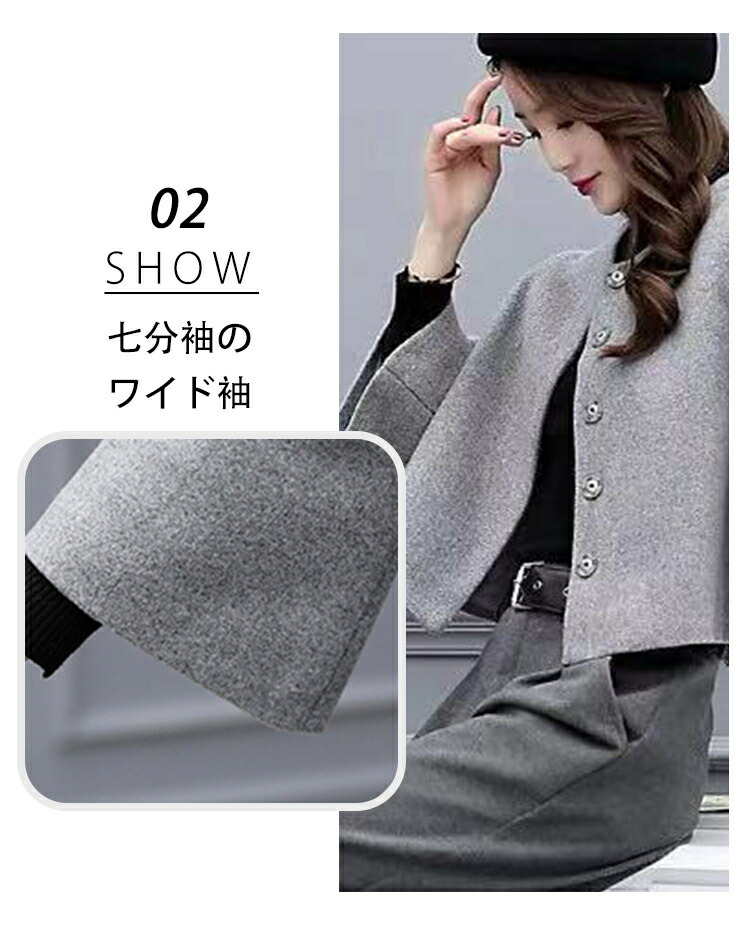 ★重たく見えがちな冬のコートは、ショート丈を選んでバランスアップ。合わせるインナーや足元アイテムによってカジュアルスタイルからフェミニンスタイルまで幅広く使える優秀アイテムです。