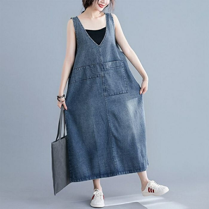 デニムジャンパースカート デニムサロペ M L XL
