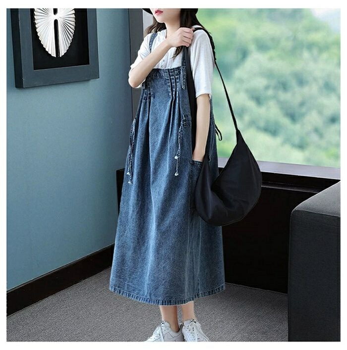 デニム ワンピース ジャンパースカート 夏 ジャンスカ スカート パーカー デニムサロペット ロング コットンワンピース ジャンスカ 大きいサイズ 春 マキシ レディース 女性用 体型カバー 無地 Aライン 袖なし ゆったり ノースリーブ 旅行 カジュアル